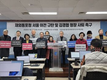 인천의 시민사회단체들이 송도에 있는 재외동포청 서울 이전 검토를 발언한 김경협 재외동포청사퇴와 외교부 감사를 촉구하고 나섰다.인천지역 131개 시민사회단체로 구성된 인천사랑범시민네트워크는 27일 인천시청 브리핑룸에서 기자회견을 열고 "김경협 재외동포청장의 서울 이전 발